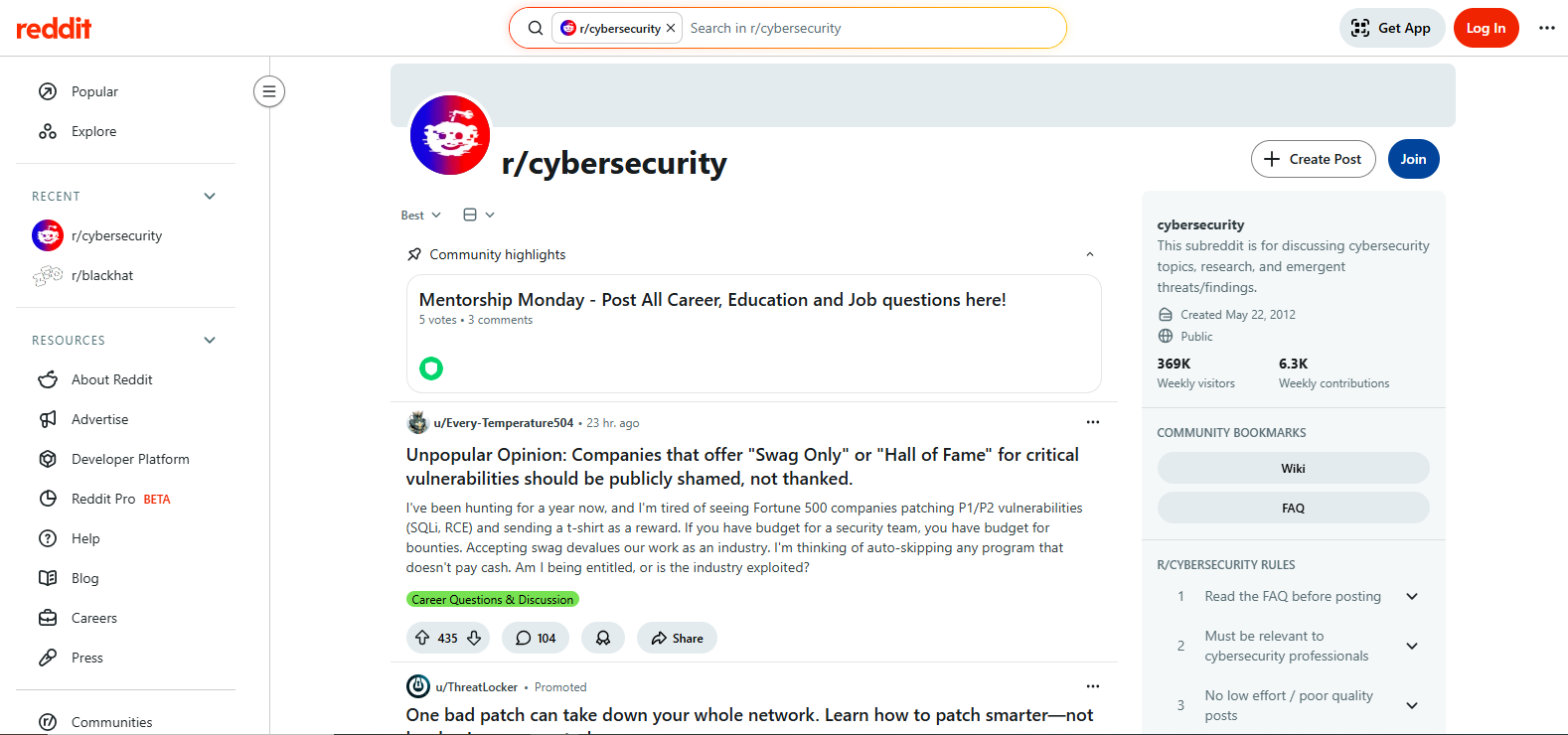 If you’re looking for in-depth discussions on the hottest cyber security topics, this is the place for you. Some of the most active recent threads as of the time of writing include: