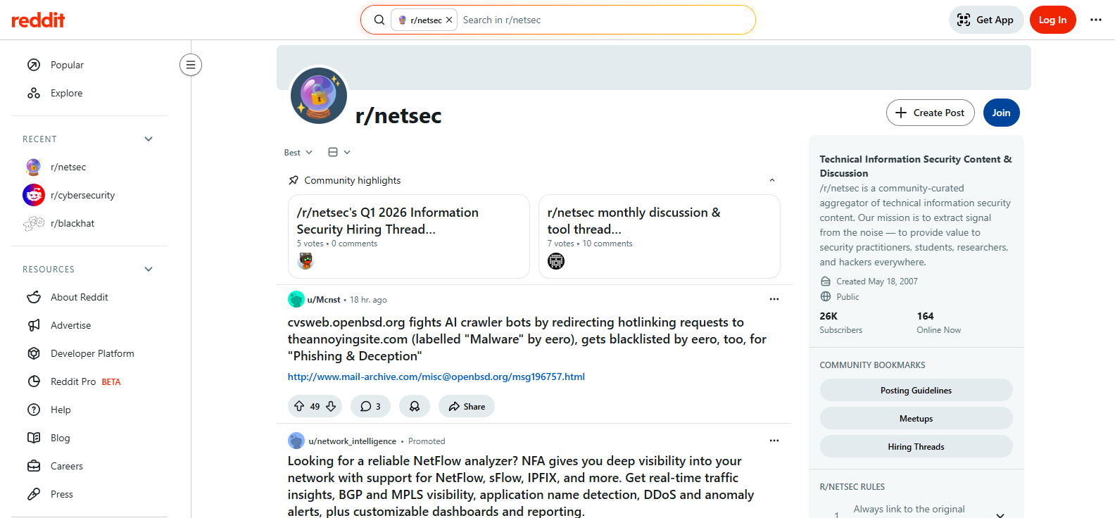 With over 611,000 users, this subreddit receives dozens of posts every day. It’s highly active, meaning you’ll almost always have an audience for your post. It’s also a general cyber security forum that covers various topics (though not always in-depth). If you’re new to cyber security, this forum would be perfect for you as you attempt to navigate the rapidly changing field.